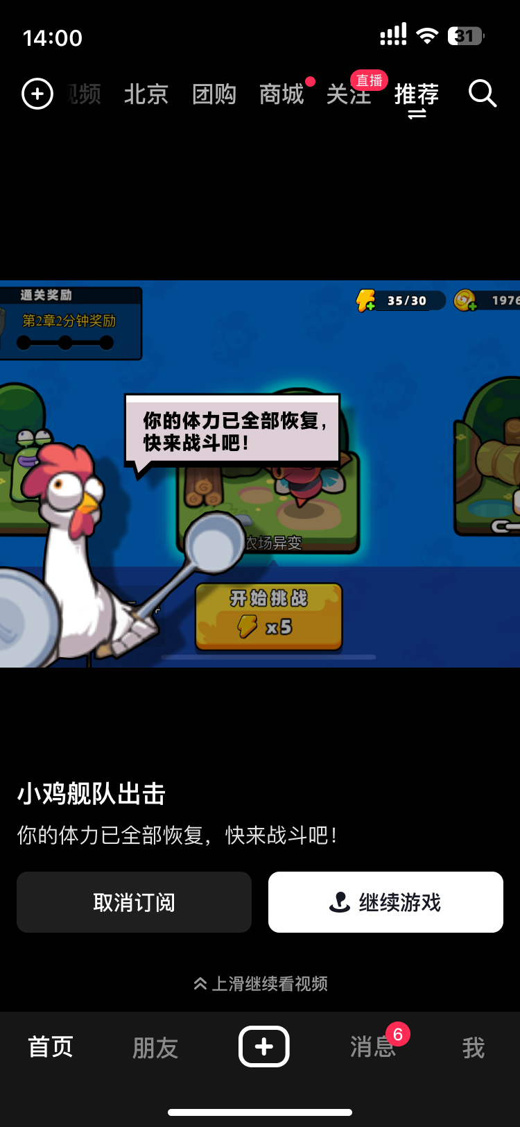 | 用户抖音上玩小游戏 | 用户玩游戏过程中体力耗尽后退出游戏,用户刷抖音 | 游戏离线恢复体力,体力恢复后用户刷到游戏推荐卡片,提示用户游戏体力恢复 | 用户点击游戏推荐卡片直接进入游戏游玩 |