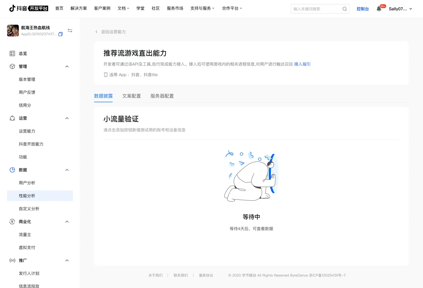 登录《抖音开放平台控制台》 (opens new window)后台,完成以下操作: