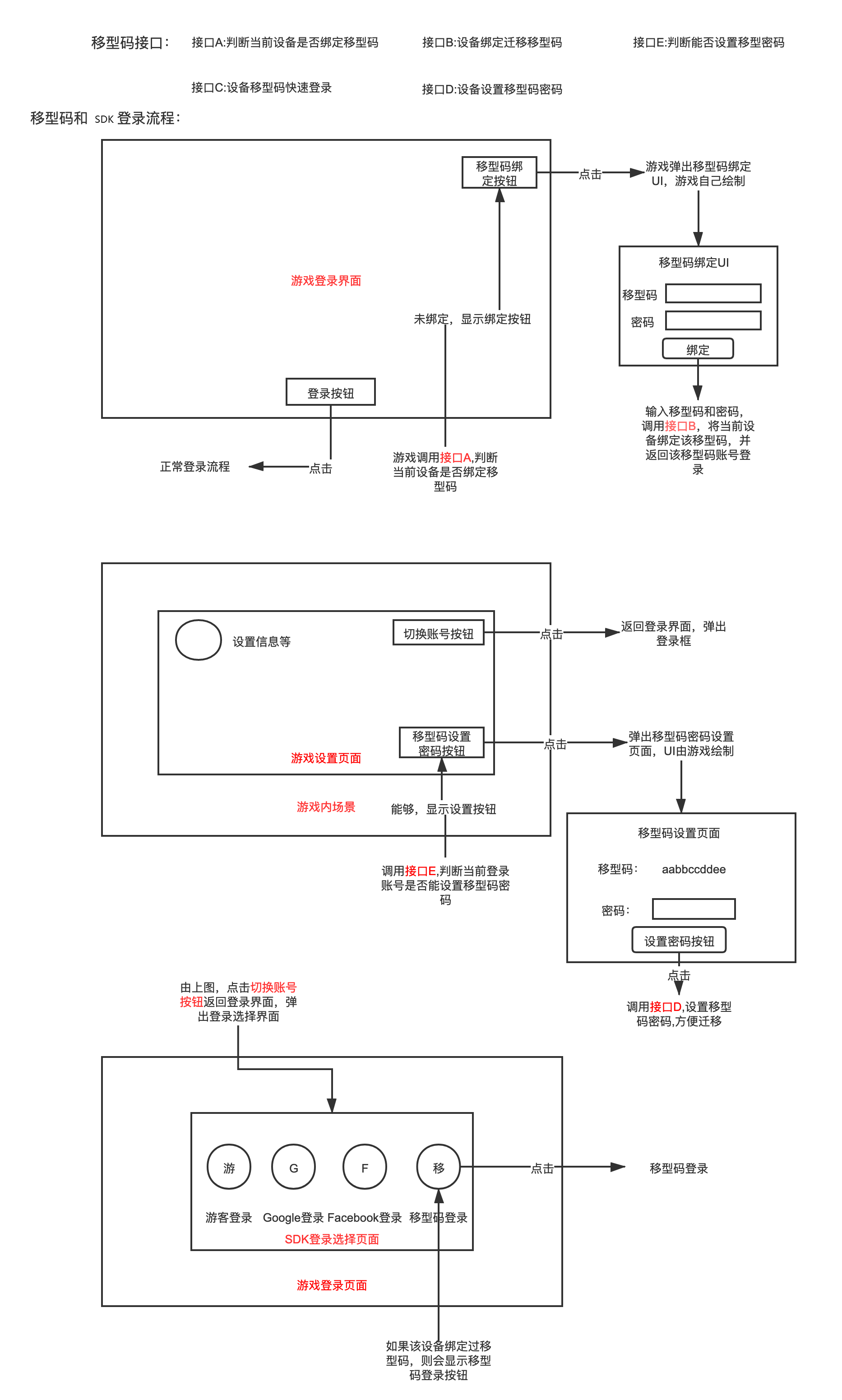 移型码是玩家账号在不同设备间迁移的一种方式,主要用于日本地区,游戏接入移型码需要配置额外的流程。以下是相关接口和大致流程图。